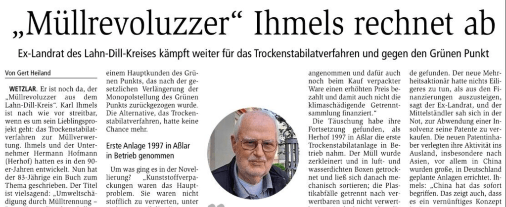 Der Müllrevoluzzer Verfasst vonkarlihmels7Oktober 1, 2024Oktober 1, 2024Veröffentlicht inAbfallwirtschaft Neuer Artikel in der Wetzlarer Neuen Zeitung (23.9.2024) 2024-09-23_Wetzlarer_Neue_ZeitungDownload Teilen mit: Klicke, um auf X zu teilen (Wird in neuem Fenster geöffnet) X Klick, um auf Facebook zu teilen (Wird in neuem Fenster geöffnet) Facebook Gefällt mir Wird geladen … Ähnliche Beiträge